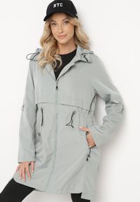 Born2be - Miętowa Długa Kurtka Płaszcz Pikowana z Kapturem Bellique. Typ kołnierza: kaptur. Kolor: miętowy. Długość: długie. Wzór: aplikacja
