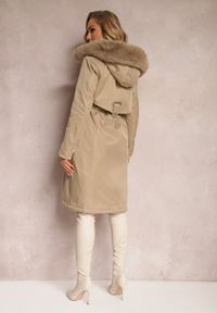 Czarna Kurtka Płaszcz ze Ściągaczem i Kapturem z Ozdobnym Futerkiem Livieya. Kurtka Livieya sięgająca za kolano, ściągana w pasie troczkiem. Ocieplana od środka sztucznym futerkiem. Przód zapinany na zamek błyskawiczny ukryty pod plisą na napy. Wsuwane kieszenie na wysokości bioder. Posiada kaptur z odpinaną imitacją futerka.