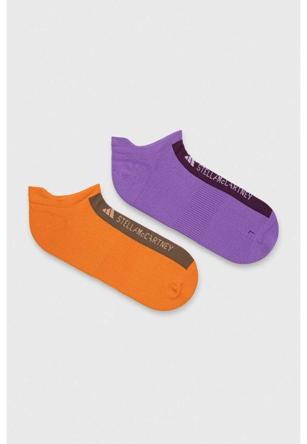 adidas by Stella McCartney skarpetki 2-pack damskie. - Produkt pochodzi z linii produktów Adidas End Plastic Waste, które wykonane są z materiałów z recyklingu.- Model wykonany z lekkiej, przewiewnej dzianiny.- Brak szwów w obszarze palców i pięty zwiększa komfort użytkowania.- Wykończenie ze ściągacza zapobiega zsuwaniu się skarpetek.