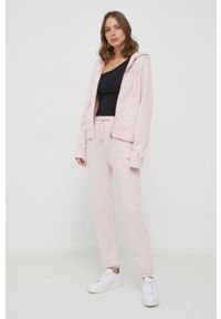 Tommy Hilfiger bluza damska kolor różowy z kapturem gładka. - Bawełna przetworzona w zrównoważony sposób zmniejsza wpływ na środowisko, ograniczając stosowanie substancji chemicznych oraz oszczędzając wodę i energię, poprawiając warunki życia i rozwój gospodarczy regionów produkujących bawełnę.- Prosty, nie blokujący ruchów fason.- Kaptur ściągany troczkami zapewnia dodatkowe ciepło i osłonę, gdy jest to potrzebne.- Długi rękaw.- Zapięcie na suwak.- Dwie wsuwane kieszenie boczne.- Rękawy i dolna krawędź zakończona ściągaczami chroniącymi przed niekorzystnymi warunkami atmosferycznymi.- Z przodu grafika z logo marki.- Długość rękawa: 67 cm.- Długość: 60 cm.- Szerokość pod pachami: 55 cm.- Wymiary podane dla rozmiaru: S.