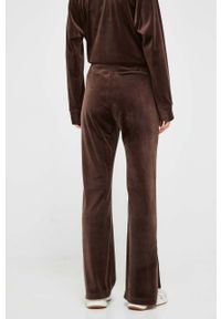 Dkny spodnie dresowe kolor brązowy gładkie. - Luźna nogawka.- W pasie elastyczna listwa z troczkami.- Dwie wsuwane kieszenie boczne.- Szerokość w pasie: 37 cm.- Szerokość w biodrach: 50 cm.- Wysokość stanu: 25 cm.- Szerokość nogawki na dole: 24 cm.- Szerokość nogawki: 30 cm.- Długość nogawki: 105 cm.- Wymiary podane dla rozmiaru: S.