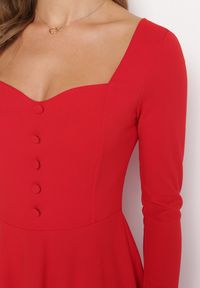 Born2be - Czerwona Rozkloszowana Sukienka Midi z Ozdobnymi Guzikami Aramita. Kolor: czerwony. Długość rękawa: długi rękaw. Wzór: aplikacja. Długość: midi #4