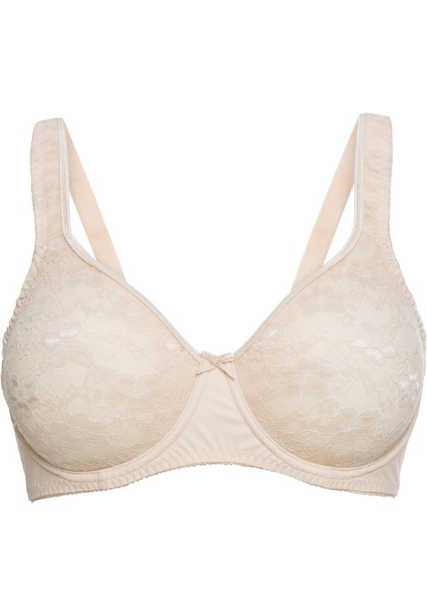 Beżowy biustonosz bonprix z wyściełanymi miseczkami, w koronkowe wzory