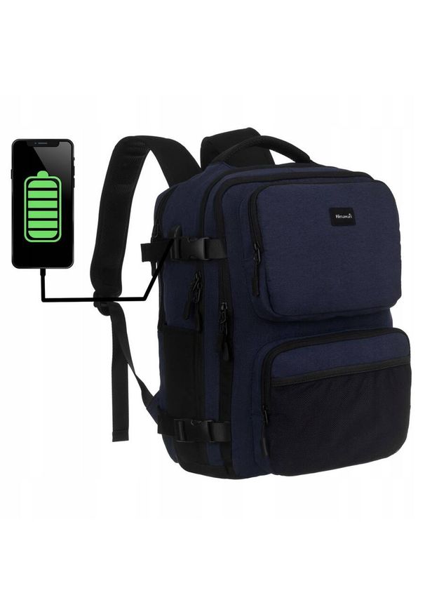 Plecak podróżny Himawari 2301-02 granatowy. Stylowy plecak wykonany z ekologicznej wodoodpornej tkaniny poliestrowej. Pojemny i funkcjonalny, idealny do codziennego użytku. Idealnie nada się jako bagaż podręczny linii Wizzair. Plecak mieści format A4.