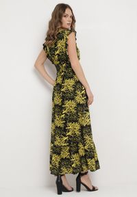 Czarno-Żółta Maxi Sukienka Rozkloszowana z Wiskozy z Kopertową Górą Wiracia. Maxi sukienka Wiracia rozkloszowana z wiskozy z kopertową górą to połączenie wygody i elegancji. Rozkloszowany krój nadaje sukience lekkości i swobody ruchu, co sprawia, że jest idealna na różne okazje. Nie ma podszewki.