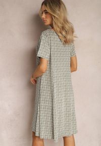 Renee - Zielono-Beżowa Rozkloszowana Sukienka w Ornamentalny Wzór z Wiskozy Oflia. Kolor: zielony. Materiał: wiskoza. Sezon: lato #2