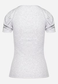 Born2be - Jasnoszara Bawełniana Bluzka z Prążkowanego Materiału Ozdobiona Cyrkoniami Nessaria. Kolor: szary. Materiał: prążkowany, bawełna, materiał. Wzór: aplikacja #7