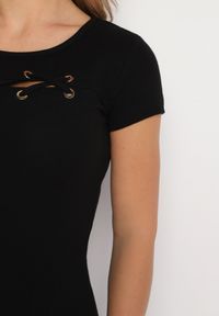 Born2be - Czarna Bawełniana Bluzka z Plecionym Zdobieniem przy Dekolcie Elretia. Kolor: czarny. Materiał: bawełna. Wzór: aplikacja. Sezon: lato #5