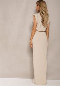 Beżowa Dopasowana Sukienka Maxi z Rozcięciem i Poduszkami w Ramionach Racbba. Odkryj Dopasowaną Sukienkę Maxi z Rozcięciem i Poduszkami w Ramionach Racbba – must have w garderobie każdej modowej entuzjastki! Jej elegancki fason z poduszkami w ramionach podkreśla kobiece kształty, a rozcięcie dodaje szyku. Świetnie sprawdzi się zarówno na wieczorne wyjścia, jak i na specjalne okazje, gdzie chcesz wyglądać glamour. Stylizuj ją z wysokimi szpilkami i delikatną kopertówką, aby stworzyć perfekcyjny look pełen pewności siebie!