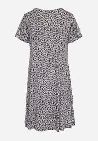 Born2be - Granatowo-Biała Rozkloszowana Sukienka z Wiskozy Krótkim Rękawem i Mozaikowym Printem Hyacina. Kolor: niebieski. Materiał: wiskoza. Długość rękawa: krótki rękaw. Wzór: nadruk. Sezon: lato. Styl: wakacyjny #7