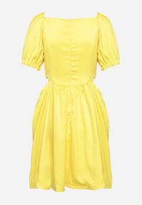 Żółta sukienka mini Born2be rozkloszowana, z aplikacjami 3100003122536
