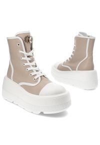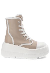 Beżowe Botki Carinii Modne Obuwie Damskie. Zanurz się w niezwykłej harmonii klasycznego designu i nowoczesnej elegancji, nosząc botki CARINII - B9373_-L46-T32-000-G36 Beż/Biały. Ich wyjątkowa kombinacja kolorów i staranne wykonanie sprawiają, że każdy krok staje się manifestacją stylu oraz komfortu. Botki CARINII - B9373_-L46-T32-000-G36 Beż/Biały doskonale uzupełniają codzienne stylizacje, ale także dodają im subtelnej elegancji. Poznaj luksus i funkcjonalność, jakie oferują botki CARINII - B9373_-L46-T32-000-G36 Beż/Biały, podkreślając swój indywidualny styl z delikatnym, lecz zapadającym w pamięć urokiem.