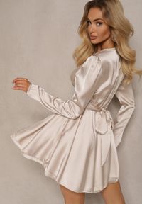 Beżowa Satynowa Sukienka Mini z Falbankami i Paskiem z Tyłu w Talii Catriona. Girl, nie możesz jej przegapić! Odkryj satynową mini sukienkę Catriona, która stanie się perełką w Twojej garderobie na wyjątkowe wydarzenia. Pasek akcentuje Twoją talię. Zaprojektuj swój niepowtarzalny look na wieczorne przyjęcie, skomponuj ją z eleganckimi czółenkami i błyszczącą kopertówką. Masz vibe, my mamy look. Kliknij i połącz to!