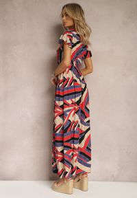 Renee - Czerwono-Beżowa Rozkloszowana Sukienka z Wiskozy z Gumką w Talii i Abstrakcyjnym Wzorem Pairella. Kolor: czerwony. Materiał: wiskoza #4