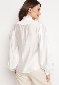 Born2be - Biała Koszula Retro z Falbankami i Perełkami Przy Dekolcie i Guzikach Nimue. Typ kołnierza: kołnierz z falbankami. Kolor: biały. Styl: retro #4