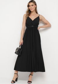 Czarna Rozkloszowana Sukienka Długa z Kopertowym Dekoltem na Ramiączkach Asmerria. Rozkloszowana sukienka długa z kopertowym dekoltem na ramiączkach to elegancki wybór na wieczorne wyjścia i specjalne okazje. Gumka w pasie po rozciągnięciu: S/M-95 cm, L/XL-99 cm.