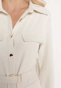 Jasnobeżowa Sukienka Koszulowa z Kieszeniami w Stylu Utility Naiatema. Odkryj uniwersalność w najlepszym stylu z Sukienką Koszulową Naiatema z kieszeniami, idealną propozycją dla kobiet ceniących klasyczne kroje z nutką nowoczesności. Prosta linia z subtelnym dekoltem tworzy ponadczasowy fason, który wyeksponuje Twoją sylwetkę. Długość rękawa jest idealna do stylizacji na każdą okazję - od codziennych wyjść po bardziej oficjalne spotkania. W minimalistyczny charakterze, który świetnie współgra z różnymi dodatkami. Na co dzień załóż do niej masywne botki oraz swobodny plecak, a wieczorem podkreśl elegancję subtelnej biżuterią i szpilkami.