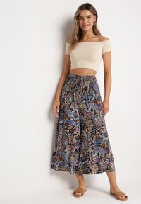 Czarne Bawełniane Spodnie Kuloty z Wzorem Paisley Tarrisa. Odkryj urok i swobodę bawełnianych spodni kulotów Tarrisa. Ich luźny krój oraz szerokie nogawki zapewnią Ci komfort noszenia, a oryginalny wzór paisley w stylu boho doda niepowtarzalnego charakteru każdej stylizacji. Wysoki stan podkreśla talię, a uniwersalny design umożliwia tworzenie różnych zestawień – od casualowych, z płaskimi sandałkami i lnianą koszulą, po wakacyjne, z szydełkowym topem i plecionymi klapkami.