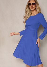 Renee - Granatowa Plisowana Sukienka Midi z Paskiem w Talii Pailomena. Kolor: niebieski. Długość: midi #1
