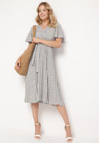 Niebieska Rozkloszowana Sukienka z Gumką w Pasie i Materiałowym Paskiem Prissa. Rozkloszowana Sukienka Prissa z bawełną to kwintesencja kobiecości łącząca klasykę z najnowszymi trendami. Z subtelnie zaznaczoną linią talii dzięki elastycznej gumce i materiałowemu paskowi. Wyróżnia się pięknym dekoltem w kształcie litery V, który dodaje uroku, oraz krótkimi rękawami – idealnymi na cieplejsze sezony. Sukienka Prissa będzie twoim modowym asystentem: załóż ją z sandałkami na co dzień lub z eleganckimi szpilkami na specjalne okazje i czuj się zniewalająco!