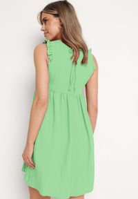 Jasnozielona Wiskozowa Sukienka z Krótkim Rękawem i Falbanką Wiązana z Tyłu Lloella. Odkryj niezwykłą Wiskozową Sukienkę z Krótkim Rękawem i Falbanką Wiązaną z Tyłu Lloella, w tym sezonie stworzysz z nią look w kilka chwil. Możesz założyć ją do trampek na spotkanie z przyjaciółkami. Wiązanie przy ramionach pozwoli Ci dopasować ją do Twoich potrzeb. Wykonana z wiskozy, doskonale sprawdzi się w sezonie wiosenno-letnim, abyś mogła cieszyć się wygodą. Dodaj do koszyka i ciesz się komfortem każdego dnia.