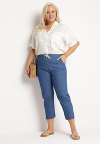 Granatowe Bawełniane Spodnie z Wysokim Stanem i Gumką w Pasie Zakończoną Troczkami Wedira. Oto bawełniane spodnie Wedira z kieszeniami po bokach, które z powodzeniem połączysz z różnorodnymi elementami swojej garderoby, zarówno na co dzień, jak i na wyjątkowe okazje. Wykonane z bawełny, idealne przez cały dzień. Ich wysoki stan w połączeniu z elastyczną gumką i dekoracyjnymi troczkami podkreśli twoją sylwetkę, a proste nogawki będą pasować zarówno do trampków, jak i szpilek. Bez względu na sezon, te spodnie staną się klasyczną bazą wielu stylizacji – od luźnego T-shirtu i sneakersów po elegancką koszulę i klasyczne czółenka.