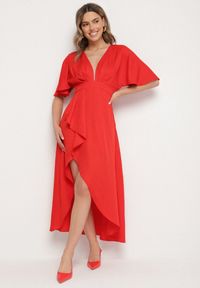 Czerwona Asymetryczna Sukienka Rozkloszowana Maxi Adavia. Odkryj magię asymetrii z sukienką Adavia, która przyciąga spojrzenia swoją oryginalną linią. Jej unikatowy fason na jedno ramię i rozkloszowanym dołem dodaje kreacji dynamiki, a dekolt pięknie podkreśla szyję. Sukienka nie posiada podszewki. Jest idealna na różnorodne okazje – od romantycznej kolacji aż po eleganckie przyjęcie. Stwórz elegancki look, wybierając do niej wysokie obcasy i minimalistyczną biżuterię. Uwaga: jest to sukienka polecana dla wysokich kobiet!