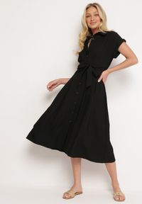 Czarna Koszulowa Sukienka Zapinana na Guziki z Materiałowym Paskiem Moaxel. Odkryj urok klasyki w nowoczesnym wydaniu z sukienką Moaxel o rozkloszowanym kroju, która pięknie podkreśli twoją sylwetkę. Dekolt v-neck dodaje subtelności, zbalansowanej przez praktyczne, krótkie rękawy. Niezależnie od okazji, ta sukienka zapewni Ci świeży i kobiecy look – załóż ją na luźne spotkania z przyjaciółmi z espadrylami i słomkowym kapeluszem lub zestaw z eleganckimi szpilkami i minimalistyczną biżuterią na bardziej formalne wydarzenia.