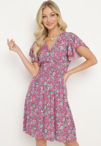Różowa Wiskozowa Sukienka w Kwiaty z Trójkątnym Dekoltem i Gumką w Talii Tivara. Odkryj wiskozową sukienkę Tivara, która łączy w sobie delikatność kwiatowego wzoru i nowoczesny fason z trójkątnym dekoltem. Gumka w talii (po rozciągnięciu: 95 cm — M/L, 99 cm — XL/XXL) podkreśla sylwetkę, zapewniając jednocześnie komfort noszenia, a wiskozowy materiał dodaje lekkości. Sukienka nie posiada podszewki. Doskonale sprawdzi się zarówno na co dzień w połączeniu z trampkami i jeansową kurtką, jak i randkę, zestawiona z eleganckimi sandałami i biżuterią. Wybierz sukienkę Tivara dla niepowtarzalnego, uniwersalnego looku, który podąża za najnowszymi trendami!