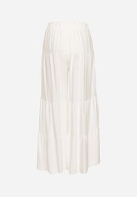 Białe Szerokie Spodnie z Wiskozy z Gumką w Talii Ozdobione Falbanką Dimlea. Spodnie Dimlea to kwintesencja uniwersalnego stylu z nutką nowoczesnej nonszalancji. Wykonane z przewiewnej wiskozy, zapewniają nie tylko wygodę, ale i elegancję dzięki szerokim nogawkom oraz elastycznej gumce w talii, która subtelnie podkreśla sylwetkę. Falbanki dodają im dziewczęcego uroku, a ich uniwersalny krój sprawia, że będą pasować na każdą okazję. Na co dzień zestaw je z luźnym topem i sandałami, zaś na wieczorne wyjście dobierz szpilki i żakiet.