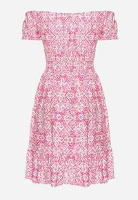 Różowa Wiskozowa Sukienka Hiszpanka z Gumką w Talii z Materiałowym Paskiem i Falbanką Tiamanthea. Sukienka Hiszpanka Tiamanthea to synonim kobiecości i elegancji, która z łatwością znajdzie swoje miejsce w każdej modnej garderobie. Wyjątkowy fason z elastyczną gumką w talii i wiązaniem w pasie pięknie zaakcentuje Twoją sylwetkę, a subtelna falbanka dodaje rozkosznego uroku. Lekko bufiaste rękawy umiarkowanej długości sprawią, że będziesz czuć się komfortowo zarówno podczas codziennych wyjść, jak i na specjalnych okolicznościach. Wymiary gumki w pasie po rozciągnięciu: S/M - 55 cm, L/XL - 59 cm.