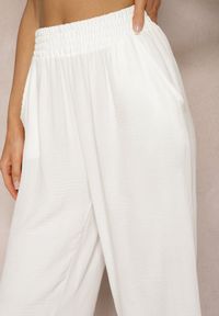 Białe Spodnie Palazzo z Gumką w Talii i Długością Nogawki 3/4 Moolia. Spodnie Palazzo Moolia z linii Plus Size to idealny wybór dla kobiet, które cenią sobie modę. Ich swobodny fason z szerokimi, 3/4 nogawkami zapewnia wolność ruchów i dodaje stylizacjom luzu. Elastyczna gumka w talii gwarantuje idealne dopasowanie i podkreśla sylwetkę, a materiał sprawia, że są one odpowiednie na każdą porę roku. Te spodnie świetnie sprawdzą się zarówno w casualowych, jak i bardziej formalnych zestawach.