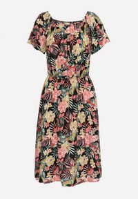 Czarno-Różowa Bawełniana Sukienka z Motywem Kwiatowym o Lekko Rozkloszowanym Fasonie Dimivias. Sukienka Dimivias to kwintesencja kobiecości wpleciona w modny, kwiatowy wzór. Jej delikatnie rozkloszowany krój sprawia, że jest doskonała zarówno na codzienne, jak i bardziej uroczyste wyjścia. Zmysłowy dekolt hiszpański subtelnie podkreśla szyję, a krótkie rękawy dodają lekkości tej bawełnianej kreacji. Wyobraź sobie siebie w tej sukience, dopasowując ją z eleganckimi sandałami na obiedzie firmowym lub załóż ją z białymi trampkami na weekendowe spotkanie z przyjaciółmi.