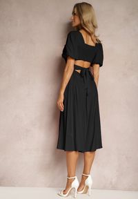 Czarna Wiskozowa Sukienka o Rozkloszowanym Kroju z Wycięciem na Plecach i Wiązaniem Dimiella. Odkryj swoje plecy z klasą dzięki sukience Dimiella, która z pewnością stanie się Twoją sekretną bronią wdzięku na każdą okazję. Jej rozkloszowany fason idealnie podkreśli Twoją talię i doda lekkości ruchom, a subtelna linia dekoltu z przodu zapewni elegancję. Zaskakująco głębokie wycięcie na plecach w połączeniu z uroczym wiązaniem tworzy idealną równowagę między pokusą a klasą.
