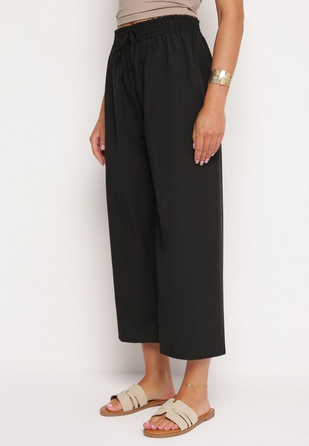 Czarne Szerokie Spodnie z Wysokim Stanem Wiskozą i Gumką w Pasie Criseldas. Odkryj szerokie spodnie z wysokim stanem Criseldas z wiskozą, w których z pewnością zakochają się wszystkie miłośniczki mody. Szeroki krój z gumką w pasie stworzy idealną bazę zarówno do stylizacji codziennych, jak i eleganckich. Łącz je z prostą, białą koszulą i mokasynami do biura lub z jedwabną bluzką i szpilkami na wieczorne wyjście.