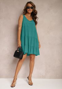 Ciemnozielona Sukienka z Bawełny o Rozkloszowanym Kroju Ozdobiona Falbankami Tessah. Odkryj urok rozkloszowanej sukienki Tessah z bawełny idealnej na każdą porę roku! Jej klasyczny fason sprawia, że wyglądasz stylowo w każdej sytuacji. Delikatne falbanki dodają lekkości i dziewczęcego uroku, a szeroki dekolt pięknie podkreśli twoją szyję i obojczyki. Stwórz casualowy zestaw ze sneakersami i jeansową kurtką lub wybierz elegancję, łącząc ją z klasycznymi czółenkami i subtelną biżuterią – z sukienką Tessah zawsze będziesz w centrum uwagi!