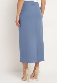 Niebieska Spódnica o Trapezowym Kroju z Rozporkiem Zapinana na Zamek Błyskawiczny Tiamarue. Kreuj swój niepowtarzalny styl z trapezową spódnicą Tiamarue, która łączy klasyczne piękno z nowoczesnymi detalami. Minimalistyczny design tego modelu zdobi dyskretny rozporek, a wygodne zapięcie na zamek błyskawiczny gwarantuje łatwe dopasowanie. Spódnica jest wykonana z przyjemnego w dotyku materiału, idealnie sprawdzając się w każdej sytuacji - zarówno na codziennie wyjścia, jak i formalne spotkania.
