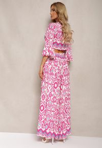 Fuksjowy Komplet Bluzka Kopertowy Wiązany pod Biustem Szerokie Spodnie z Gumką w Talii Viknelas. Nasz zestaw Viknelas to idealna propozycja dla wszystkich it-girls! Bluzka o kopertowym fasonie z wiązaniem pod biustem podkreśla kobiece kształty, a szerokie spodnie z gumką w talii zapewniają pełną swobodę ruchów. Lekki materiał z bawełny sprawia, że zestaw ten doskonale sprawdzi się zarówno w wiosenne dni, jak i letnie wieczory. Stwórz urzekającą stylizację na co dzień, łącząc go z espadrylami i torebką typu crossbody lub wybierz eleganckie szpilki i biżuterię na wyjątkowe okazje. Nie zwlekaj — wyróżnij się w tłumie z kompletem Viknelas!