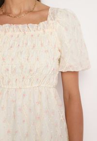 Beżowo-Różowa Rozkloszowana Sukienka z Bufiastymi Rękawami i Marszczoną Górą Vikinania. Zachwyć się urokiem sukienki Vikinania o kobiecej linii, która subtelnie podkreśli Twoją sylwetkę. Bufiaste rękawy nadają jej romantycznego charakteru, a marszczona góra pięknie eksponuje dekolt. Zostań gwiazdą każdego przyjęcia, wybierając ten model o ponadczasowym kroju z głębokim dekoltem. A na co dzień? Dodaj skórzane botki i oversizowy sweter, aby stworzyć wygodny, ale wyrafinowany look. Sukienka idealnie wpisuje się w sezon, będąc must-have dla każdej miłośniczki mody, która ceni sobie uniwersalność i klasę.