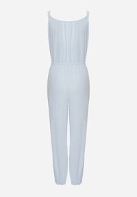 Jasnoniebieski Bawełniany Kombinezon na Regulowanych Ramiączkach ze Ściągaczem w Talii Beamla. Zachwycający bawełniany kombinezon Beamla to stylowe rozwiązanie na każdą okazję. Charakteryzuje się regulowanymi ramiączkami i głębokim dekoltem z przodu, co dodaje mu swobody i lekkości. Ściągacz w talii subtelnie podkreśla sylwetkę, a długie nogawki zapewniają elegancki wygląd. Możesz go nosić na co dzień, zestawiając z płaskimi sandałami i rozwiewną narzutką, lub elegancko, dobierając szpilki i minimalistyczną biżuterię. Ten uniwersalny fason łączy nowoczesność z klasyczną wygodą.