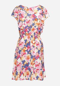 Niebiesko-Różowa Rozkloszowana Sukienka z Bawełny w Kwiaty z Gumką w Talii z Falbankami Nelsara. Odkryj urok rozkloszowanej sukienki Nelsara! Wykonana z bawełnianej tkaniny, gwarantuje komfort noszenia zarówno na co dzień, jak i podczas spotkań ze znajomymi — wystarczy zestawić ją z tenisówkami i ramoneską. Delikatna gumka w talii wspaniale eksponuje sylwetkę, a falbanki dodają jej lekkości i zwiewności. Trójkątny dekolt idealnie komponuje się z krótkimi rękawami, tworząc look, który nigdy nie wyjdzie z mody. Sukienka Nelsara od born2be.pl to uniwersalny wybór dla kobiety, która ceni sobie zarówno nowoczesne trendy, jak i ponadczasową klasykę.