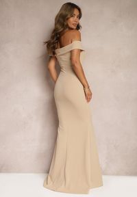 Jasnobeżowa Taliowana Sukienka Maxi z Rozcięciem Perlina. Elegancka Sukienka Perlina o taliowanym kroju i długości maxi. Lekko rozkloszowany dół z rozcięciem. Bez podszewki. Posiada szerokie ramiączka, które można obniżyć na ramiona. Doskonała na wyjątkowe okazje!
