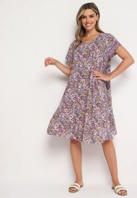 Fioletowa Wiskozowa Sukienka Rozkloszowana we Wzór Paisley Mastis. Odkryj urok wzoru paisley z tą rozkloszowaną sukienką Mastis. Cenisz sobie wygodę? Wybierz jej wiskozowy materiał i ciesz się swobodą. Rozkwitnij w jej uniwersalnym fasonie przy lunchu z przyjaciółmi, zestawiając ją z sandałami na platformie. A ty, z czym ją zestawisz? Dodaj do koszyka i ciesz się uniwersalnym wyborem.