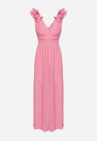 Różowy Plisowany Kombinezon Koktajlowy Ozdobiony Falbanami z Szerokimi Nogawkami Frelfrea. Wyobraź sobie kombinezon, który łączy w sobie elegancję sukienki wieczorowej. Ten plisowany model Frelfrea zachwyca swoją linia z subtelnymi falbanami przy rękawach oraz głębokim, ale dekoltem w kształcie litery V. Lekkość materiału i szerokość nogawek sprawiają, że będziesz się w nim czuć swobodnie i kobieco. Załóż ten kombinezon na cocktail party.