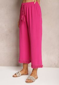 Fuksjowe Szerokie Spodnie High Waist z Gumką w Pasie Jolfea. Spodnie Jolfea to kwintesencja wygody połączonej z modnym designem. Ich wysoki stan pięknie modeluje sylwetkę, a szerokie nogawki dodają stylizacjom nowoczesnego charakteru. Idealne na co dzień i na specjalne okazje — stwórz z nimi niebanalny look, łącząc ze sneakersami i T-shirtem lub elegancką bluzką i szpilkami. Wykonane z naturalnych tkanin, spodnie Jolfea zapewniają komfort przez cały rok.