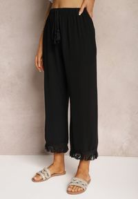 Czarne Szerokie Spodnie High Waist z Gumką w Pasie Jolfea. Spodnie Jolfea to kwintesencja wygody połączonej z modnym designem. Ich wysoki stan pięknie modeluje sylwetkę, a szerokie nogawki dodają stylizacjom nowoczesnego charakteru. Idealne na co dzień i na specjalne okazje — stwórz z nimi niebanalny look, łącząc ze sneakersami i T-shirtem lub elegancką bluzką i szpilkami. Wykonane z naturalnych tkanin, spodnie Jolfea zapewniają komfort przez cały rok.