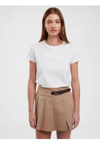 Bluzka z okrągłym dekoltem i aplikacją biała. 95%COTTON 5%ELASTANE