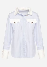 Niebieska Koszula Zapinana na Guziki z Klapami z Ozdobnymi Guzikami Nolnea. Koszula Nolnea to klasyka w nowoczesnym wydaniu, inspirowana najnowszymi trendami, ale zawsze z szacunkiem dla ponadczasowego stylu. Wykonana z materiału o delikatnej rozciągliwości, zapewnia wygodę, zaś długie rękawy i klasyczny kołnierzyk dodają jej elegancji. Ozdobne klapy skupiają uwagę i nadają charakteru, a uniwersalny krój sprawdzi się zarówno w codziennym, jak i formalnym zestawie.