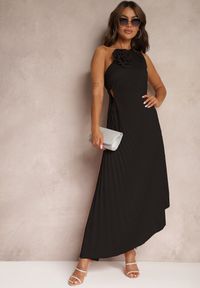 Czarna Asymetryczna Sukienka z Plisowanym Dołem i Aplikacją w Kształcie Kwiatu Fevima. Asymetryczna Sukienka Fevima to esencja współczesnej elegancji z nutką ekstrawagancji, idealna dla kobiety, która ceni sobie wyjątkowość i klasę. Unikalna linia sukienki podkreśla kobiece kształty, zaś plisowany dół dodaje gracji w każdym ruchu. Subtelny dekolt o zaokrąglonym kształcie jest odpowiednio głęboki, by zaznaczyć wytworność, a rękaw odkrywający ramię jest doskonałym połączeniem zmysłowości z elegancją. Kwiatowa aplikacja nadaje modelowi charakterystycznego wyrazu.