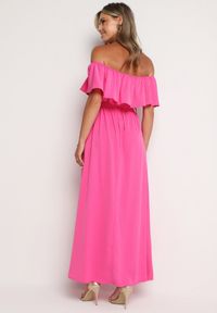 Fuksjowa Rozkloszowana Sukienka Hiszpanka z Bawełną Gumką i Paskiem w Talii Vimallene. Rozkloszowana Sukienka Hiszpanka Vimallene to synonim kobiecości i ponadczasowego stylu. Jej charakterystyczna linia z gumką podkreślająca biust oraz pasek w talii modelują sylwetkę. Gumka w tali po rozciągnięci M/L -91 cm, XL/XXL- 95cm. Sukienka jest idealna zarówno na uroczyste, jak i mniej formalne okazje. Wykonana z bawełną sukienka jest doskonałym wyborem na cieplejsze sezony. Aby stworzyć codzienną stylizację, połącz ją z espadrylami i dużą torbą shopperką. Dla wieczorowego wyglądu dobierz eleganckie sandałki i subtelne złote dodatki, by podkreślić swoją blask.